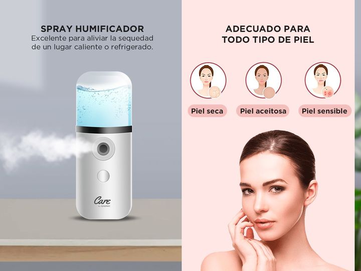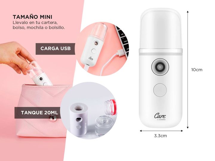 Mantén tu piel fresca y humectada durante todo el día. Finamente atomizado para llegar al fondo de tu piel. Simplemente llene con agua, haga doble clic en el botón y rocíe automáticamente una hermosa niebla. Puedes llevarlo en su cartera, bolso, mochila escolar o incluso en el bolsillo y usarlo en c...