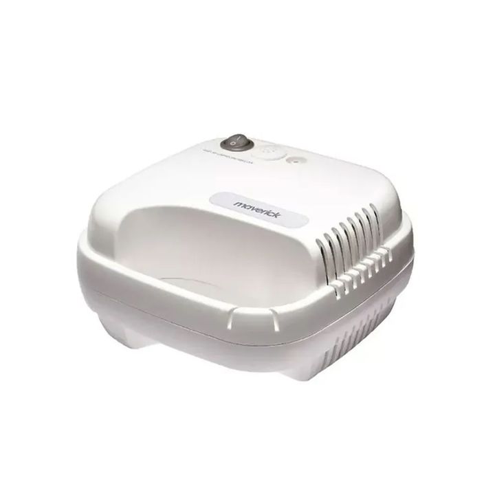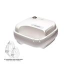 Nebulizador 403D a pistón Con porta accesorios. Incluye máscara para niños y adultos, boquilla, 2 filtros de reemplazo, tubuladura y depósito de medicamentos. Tamaño medio de partícula de 3,9 um. Ruido: ≤65dB. Se conecta a 220V, 50Hz.