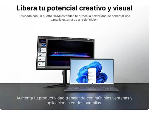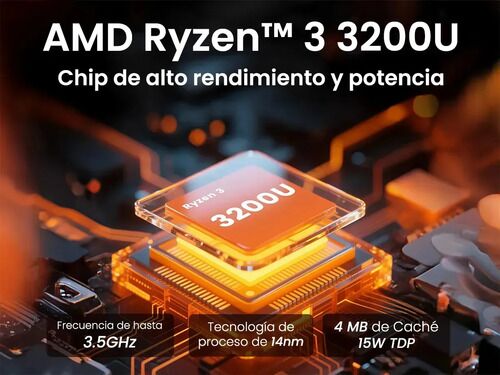 Rendimiento Ágil para el Día a Día Procesador AMD Ryzen 3 3200U: Con una velocidad de ráfaga de hasta 3.5 GHz, ofrece la potencia necesaria para navegar con múltiples pestañas, editar documentos y disfrutar de streaming sin interrupciones. Memoria RAM de 8 GB DDR4: Garantiza una multitarea fluida, p...