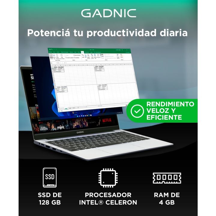Rendimiento optimizado para tus tareas diarias: Equipada con procesador Intel® Celeron N4020 y 4GB de RAM, esta notebook responde rápido en navegación, videollamadas, edición de documentos y más. Liviana, delgada y lista para llevar: Con solo 1.72 kg de peso y diseño ultradelgado, es ideal para acom...