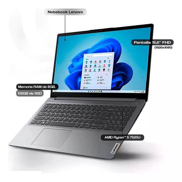 EN RADIO SAPIENZA PODES ENCONTRAR… NOTEBOOK LENOVO 15AMN8 RYZEN 5 8GB RAM/512GB SSD 15.6P W11H Características generales · Marca: Lenovo · Línea: IdealPad Slim 3 · Modelo: 15AMN8 · Modelo alfanumérico: 82XQ008GIN · Color: Gris Procesador · Tarjeta gráf...