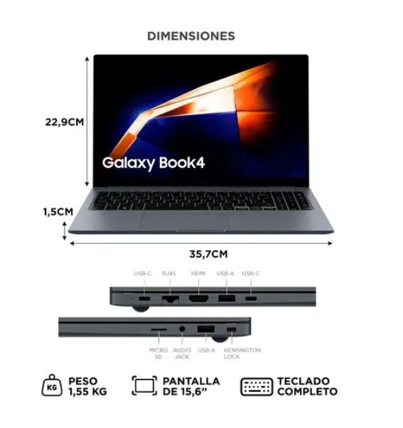 Portabilidad premium, rendimiento confiable El Samsung Galaxy Book 4 con procesador Intel Core i3 de 13ª generación, 8 GB de RAM y 256 GB SSD combina potencia y movilidad, ideal para quienes necesitan trabajar o estudiar en cualquier lugar. Conectividad versátil sin adaptadores Ofrece una amplia var...