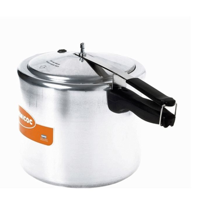 OLLA A PRESION MARMICOC: - Modelo: T07. - Cuerpo de aluminio de primera calidad. - Tapa con válvula reguladora cromada. - Mangos y asas de baquelita, fleje de acero cromado y válvula de seguridad. - Diametro: 24 cm. - Altura: 16 cm. - Capacidad: 7 Litros aprox