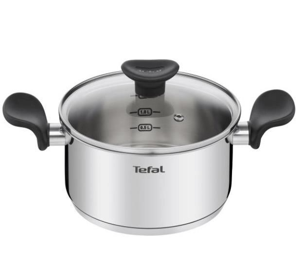 Olla 18 cm Primary Tefal E3084374 •Material: Acero inoxidable 18/10 •Agarraderas: Baquelita •Tapa: SI (vidrio) •Medida: 18 cm •Espesor base: 10 mm •Espesor cuerpo: 2 mm •Antiadherente: NO •Capas de fondo: 3 (inox/aluminio/inox) •Capacidad: 2,2 Litros •Apta inducción: SI •Apta horno: NO •Libre de PFO...