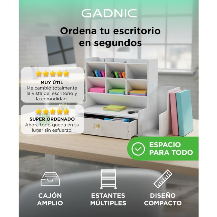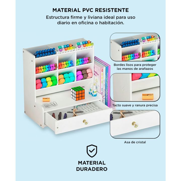 Nuevo Organizador Con Compartimientos y Cajón By Gadnic Estable y Robusto: Hecho en PVC, construcción resistente, seguro y no tóxico. Viene con una bolsa de tornillos para armar, que conecta firmemente cada pieza, no se necesitan herramientas adicionales, es la mejor y más segura opción de almacenam...