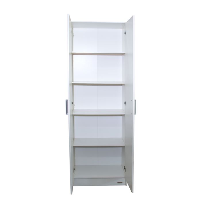Organizador multifunción de melamina. Dos puertas con tiradores plásticos. Cinco estantes fijos. Interiores revestidos. Color Blanco. Medidas: Ancho: 0.61 mts. Alto: 1.83 mts. Profundidad: 0.31 mts. Productos Seleccionado para venta y entrega “EN CAJA”.