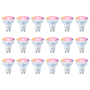 *Pack x18 ampolletas* Foco LED Inteligente WiZ GU10 Glass 4.7W 400 lm Full Color Los focos inteligentes WiZ GU10 Glass combinan el diseño clásico con la tecnología más avanzada. Su lente de vidrio auténtico aporta un acabado elegante, mientras que la iluminación LED multicolor brinda más de 16 millo...