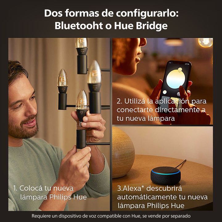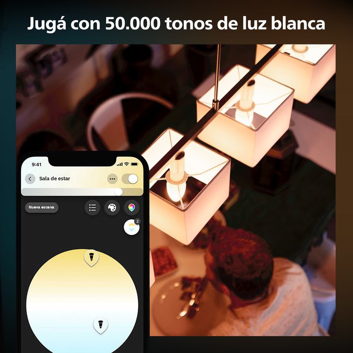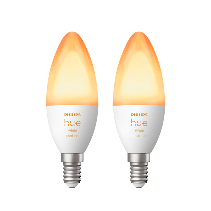 *Pack x2 ampolletas* Lampara Led Inteligente Philips Hue White Ambiance E14 470 lm Dale un toque inteligente a tu iluminación con la bombilla Philips Hue White Ambiance E14. Con su diseño tipo vela (formato B39) y casquillo E14, es ideal para apliques, lámparas decorativas y candelabros. Ofrece luz ...