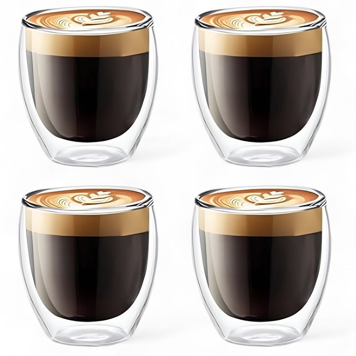 COMBO X4 HOGAR ACTUAL VASO VIDRIO DOBLE 80 ML SKU:142069 COMBO6864 vaso de vidrio de doble pared con efecto flotante. Diseño moderno y atractivo, ideal para los amantes del diseño y el buen gusto. Vidrio súper resistente al calor y al frío, que mantiene la temperatura de las bebidas durante largo ti...