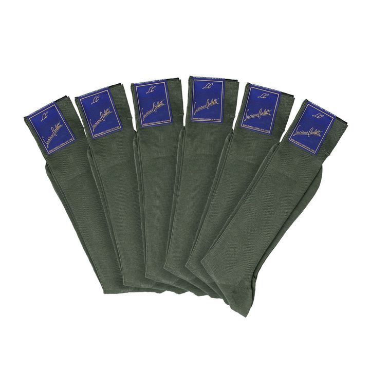 Medias confeccionadas en suave algodón verde de alta calidad y diseño liso. Su tejido brinda una sensación agradable al contacto con la piel, ofreciendo un ajuste ideal para mayor comodidad durante todo el día. - Estilo: Vestir - Marca: Luciano Carletti - Material: 100% Algodón - Articulo: HIME07394...