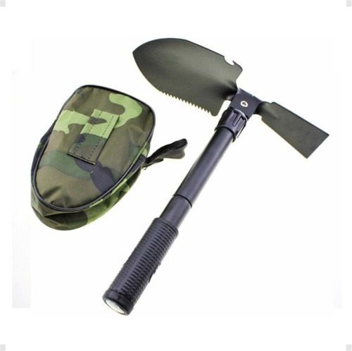 Pala Plegable ideal para jardineria o camping. Incluye estuche con pala. pico. sierra y brujula. Es portatil para facil traslado y su estuche es camuflado y se puede colgar. Largo del mango: 25.5 cm. Largo total: 29.9 cm. Ancho: 24.5 cm.