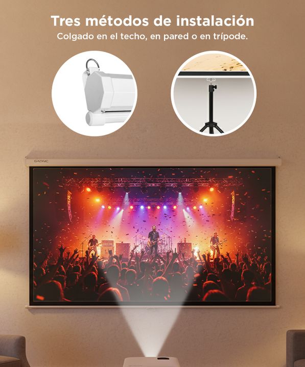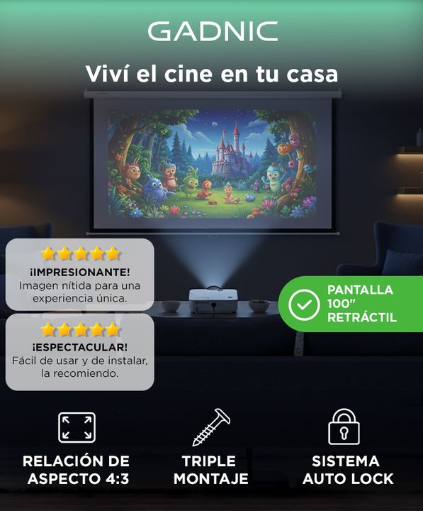 La pantalla de proyector Gadnic de 100 pulgadas manual es ideal para disfrutar de tus contenidos favoritos en gran formato. Con un diseño práctico y fácil de instalar, esta pantalla se adapta perfectamente a cualquier espacio, ya sea en el hogar, la oficina o en un evento. Su mecanismo manual permit...