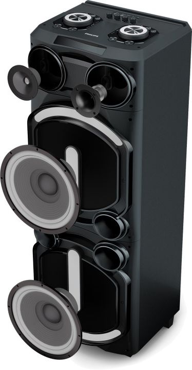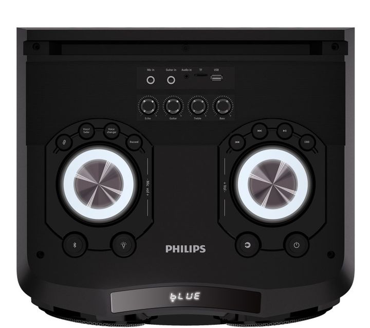 PARTY SPEAKER BLUETOOTH PHILIPS TAX5708/77. -Party Speaker Bluetooth -Diseño Carry On con Ruedas -Potencia 400W RMS -2x Woofer 12 -Consola superior para regular volumen,ecualizador y luces -Entrada para Micrófono y Guitarra -Función karaoke -Radio FM -Luces rítmicas -Alcance Bluetooth: 10 metros -Mo...