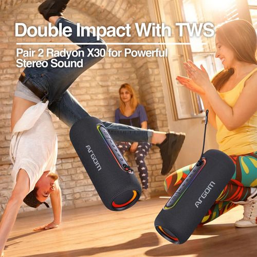 ALTAVOZ BLUETOOTH INALÁMBRICO ARGOMTECH RADYON X30 PREMIUM CON LUCES LED ARG-SP-3121BK - A00615 Descripción Llegó la nueva línea premium de parlantes portátiles! El Radyon X30 cuenta con un cordón de transporte, parlantes de 2.0 canales e incluye impresionantes efectos de iluminación. Construido con...