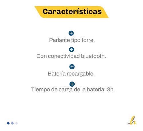 Modelo: KJ-CARNAVAL Marca: Kanji Garantía: 12 meses CARACTERÍSTICAS: - Voltaje: 220V - Tipo de parlante: torre. - Con conectividad bluetooth. - Tiene luces led. - Batería recargable. - Potencia de 9000W. - Viene con un micrófono de accesorio. - Cantidad de parlantes: 2. - Tiempo de carga de la bater...