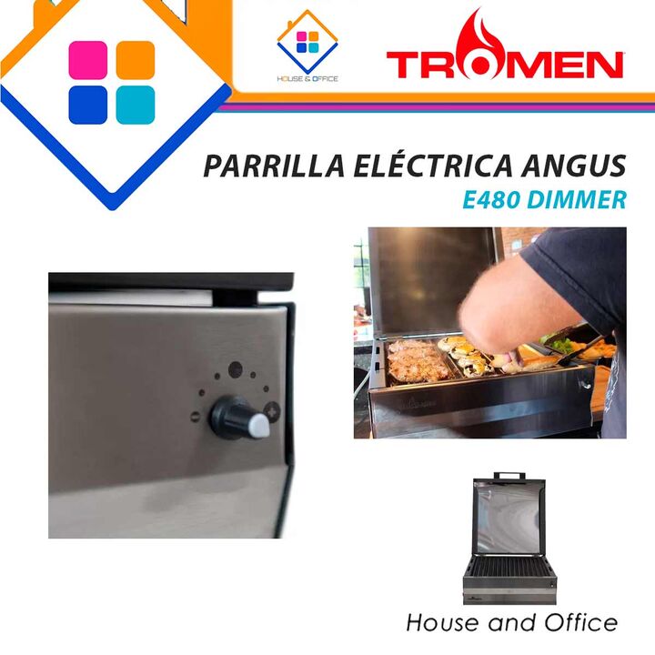 PARRILLA ELÉCTRICA ANGUS TROMEN E480 DIMMER Marca:Tromen Código: 02-000-074T PARRILLA ELÉCTRICA Control y precisión al momento de cocinar. Con su encendido rápido y control de temperatura vas a poder cocinar tus platos sin perder tiempo Dimensiones ANCHO: 48 (CM) ALTO: 24.5 (CM) PROFUNDIDAD: 50 (CM)...