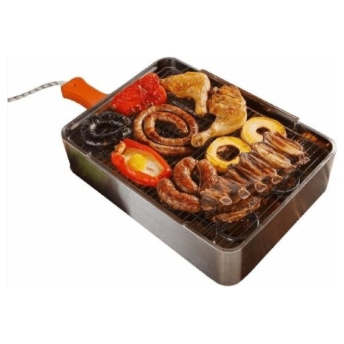 * Bandeja de acero inoxidable - Grillas cromadas - Gabinete compacto de acero inoxidable - Area de coccin 44 x 31 cm - Resistencia blindada en acero inoxidable con mango aislante - 3 niveles de coccin ideal para 4 a 6 personas. 220v 2100w aprox 10 amp