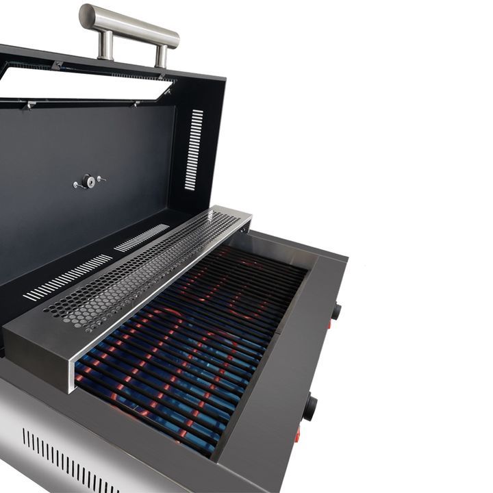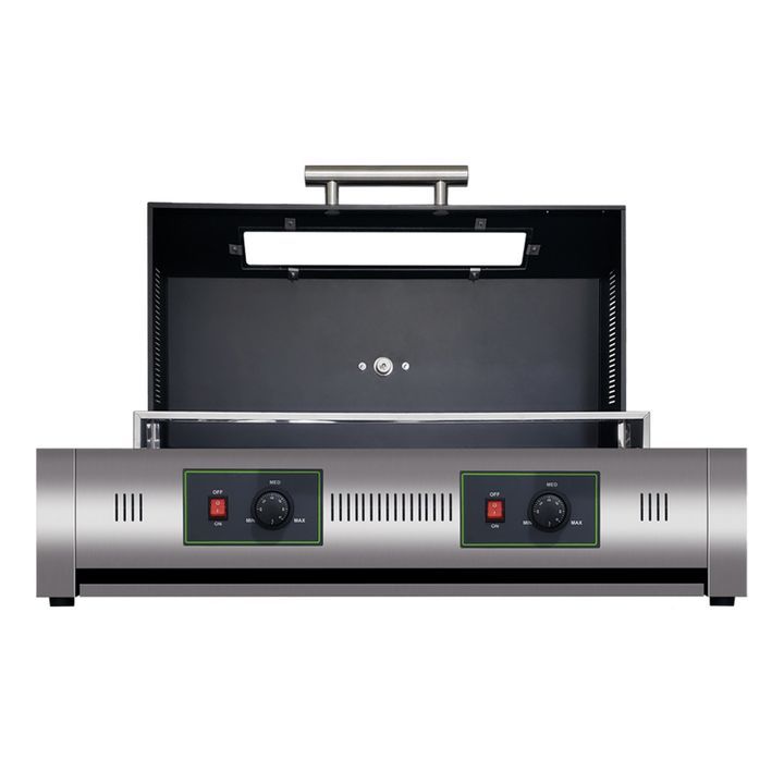E Summit parrilla electrica extra premium con bandeja de mantenimiento y visor de vidrio templado. Con la E Summit podras asar todo tipo de carnes vegetales y pizzas en un entorno limpio y saludable libre de humo. Parrilla electrica extra premium sobre mesada. Capacidad 14 personas. Material base es...