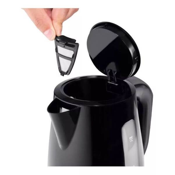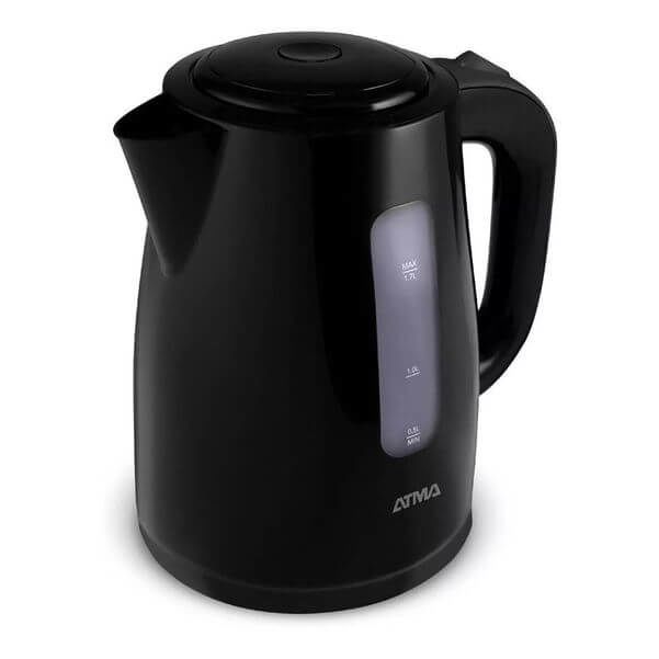PAVA ELÉCTRICA ATMA PE0821NAP 1.7LT CORTE NEGRA Características generales · Marca: Atma · Modelo: PE0821NAP · Color: Negro · Voltaje: 220V · Potencia: 2200 W Especificaciones · Capacidad en volumen: 1.7 L · Con control de temperatura: No Características de la estructura · Materiales: Plástico Otros ...