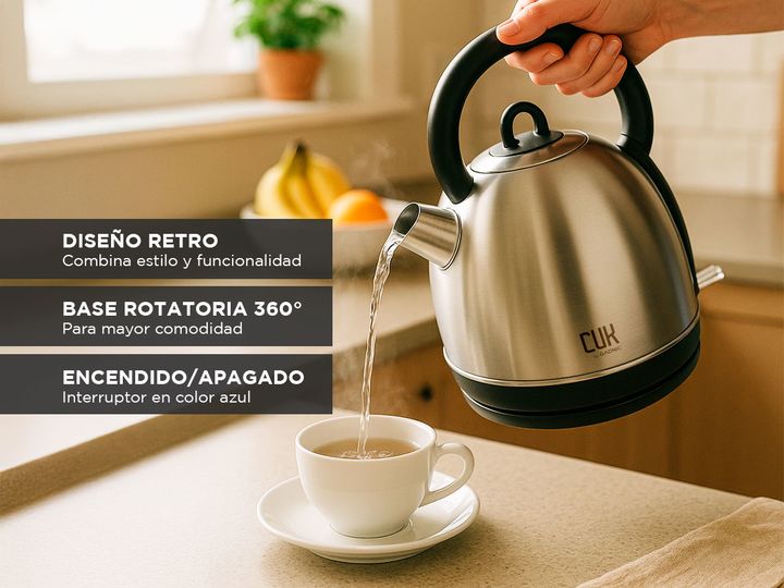 Gadnic presenta la nueva pava electrica retro Diseño Elegante y Funcional: Con cuerpo de acero inoxidable y ventana trasera de nivel de agua, esta pava combina estilo y funcionalidad. Seguridad y Comodidad: Protección contra ebullición en seco y apagado automático para un uso seguro y sin preocupaci...