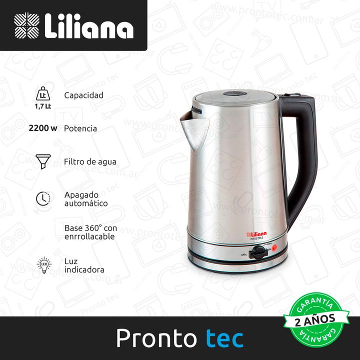 Pava eléctrica Infustyle, perfecta para tener en tu espacio. Con cuerpo de acero inoxidable, visor de nivel de agua, luz indicadora de encendido y un selector de temperatura super fácil de usar. Cuenta con tapa con traba de seguridad y un práctico sistema de apertura, y una base antideslizante con g...