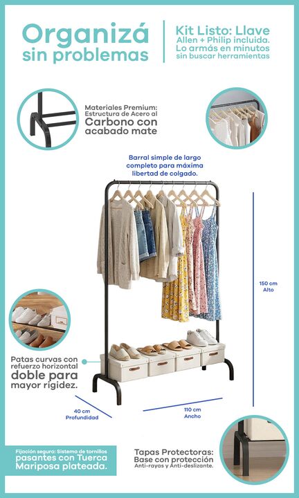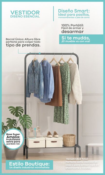 Perchero Móvil De Pie Importbaires Vestidor Barral Acero Base Porta Calzados. -100% Portátil: Fácil de armar y desarmar. Si te mudás, ¡el mueble va con vos! -Estilo Boutique: Un diseño industrial minimalista que exhibe tus prendas sin invadir el espacio -Barral Único: Altura libre perfecta para colg...