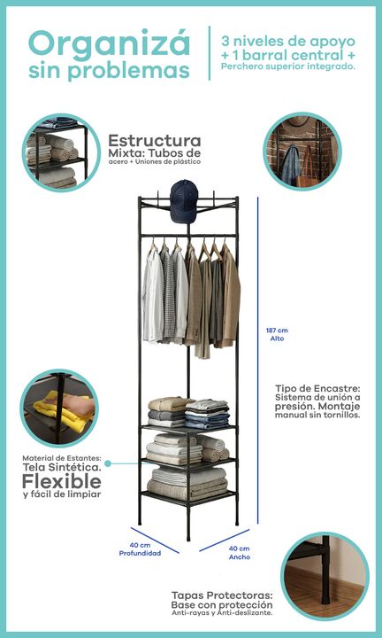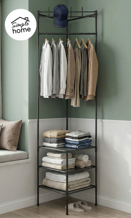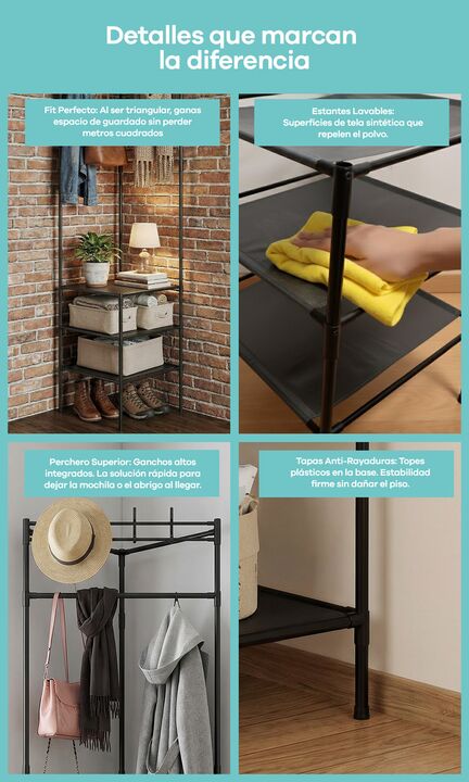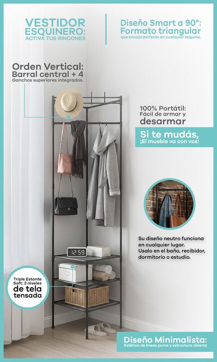 Perchero Vestidor Esquinero Metal 3 Estantes recibidor percheros extra Nuestro Perchero Esquinero llega para transformar ese angulo vacio en un espacio de guardado con estilo. Con su diseño Smart a 90 grados, activas cualquier rincón de tu casa, showroom u oficina. Estética minimalista, aire industr...