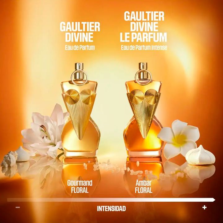UN AROMA FLORAL AMBARINO INTENSAMENTE DIVINO. Sé tú misma, divina y sensual, con este le parfum aún más intenso y atrevido que el original. Jean Paul Gaultier Divine se reinventa con una composición cautivadora que resalta tu singularidad y poder. Descripción olfativa Nota de salida: La frescura sal...