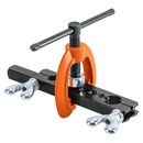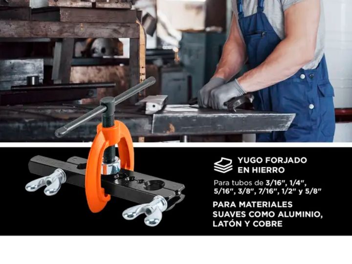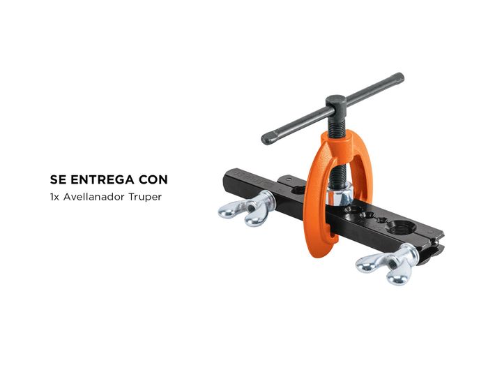 Truper - herramientas para potenciar tu proyecto. Especificaciones Yugo forjado en hierro Mariposas de ajuste rapido Para materiales suaves como aluminio, latón y cobre Barra con ranuras maquinadas antideslizables Para tubos de 3/16”, 1/4”, 5/16”, 3/8”, 7/16”, 1/2” y 5/8” Ranuras Maquinadas Antidesl...