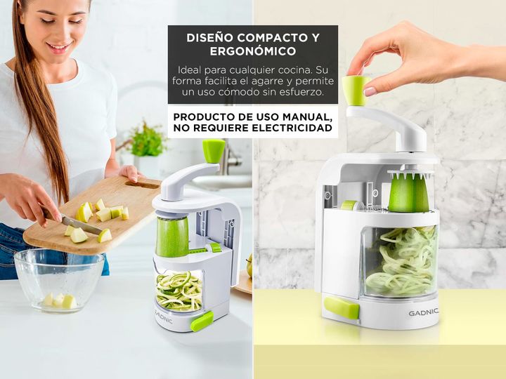 La picadora manual Gadnic es tu aliada perfecta para preparar platos originales y saludables. Con sus 4 modos de corte –en espiral, fino, rizado y grueso– vas a poder transformar vegetales comunes en preparaciones creativas. Su diseño ergonómico y compacto facilita el uso diario sin ocupar espacio e...