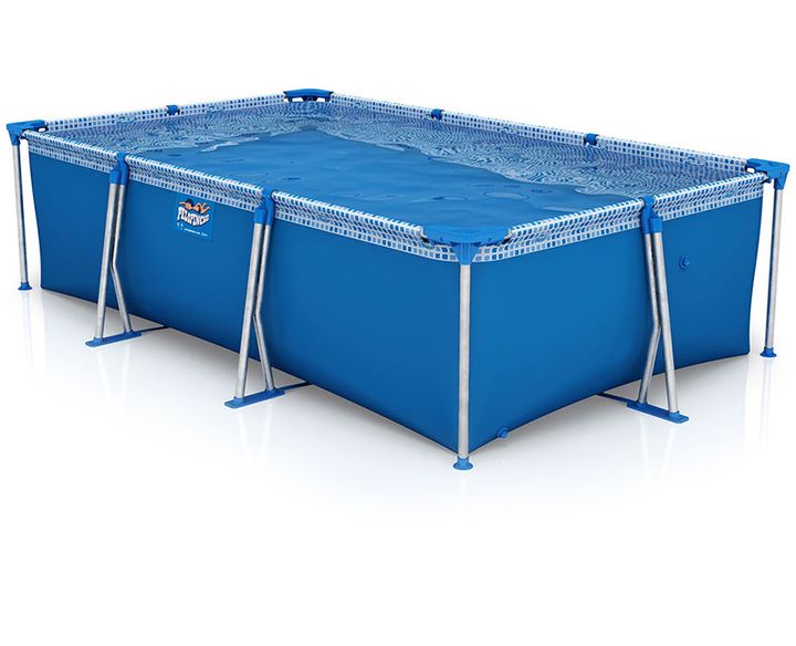 Piscina de Lona Pelopincho 1043 Tamaño 2,70 x 1,60 x 0,65 Metros Estructura metálica inoxidable Esquineros de PVC reforzados Litros 2,800 Aprox DVD + Kit Reparación + Acoples para filtro Peso 24,900 Kilogramos