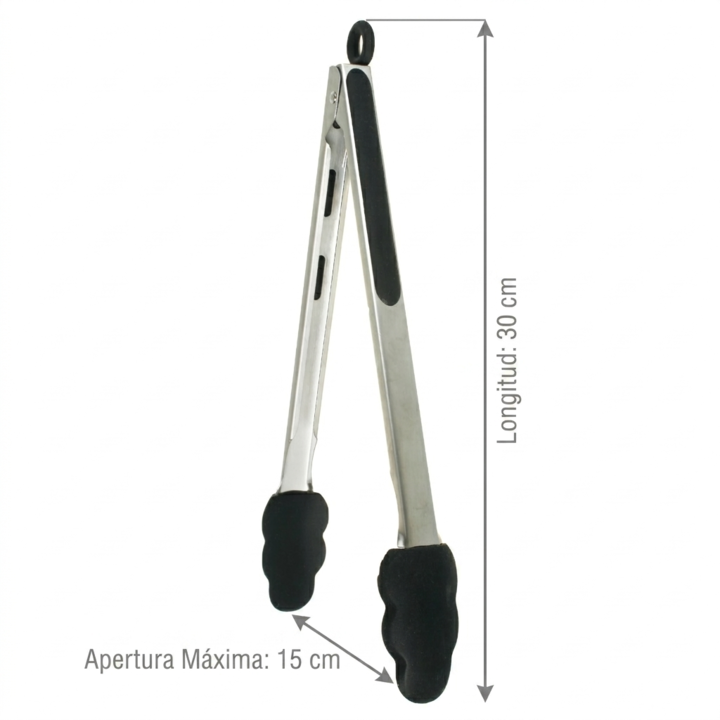Pinza multiusos con traba de 30 cm Reforzada con resorte. Mango acero con goma para mejor agarre. Orificio para colgar Longitud: 30 cm Apertura Máxima: 15 cm Libre de BPA Aprobado por Instituto Nacional de Alimentos (INAL). ANMAT Marca : Aston Resiste -40º a 200º C Apta para Microondas Apta lavavaji...
