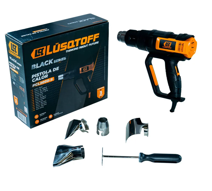 PISTOLA DE CALOR 2000W LUSQTOFF PCL2000-9 50°/600° BOQUILLAS Esta pistola de calor de 2000 W está diseñada para ofrecer un control preciso y un rendimiento confiable en aplicaciones profesionales. Cuenta con un selector de siete niveles de temperatura que permite trabajar desde 50°C hasta 600°C, ada...