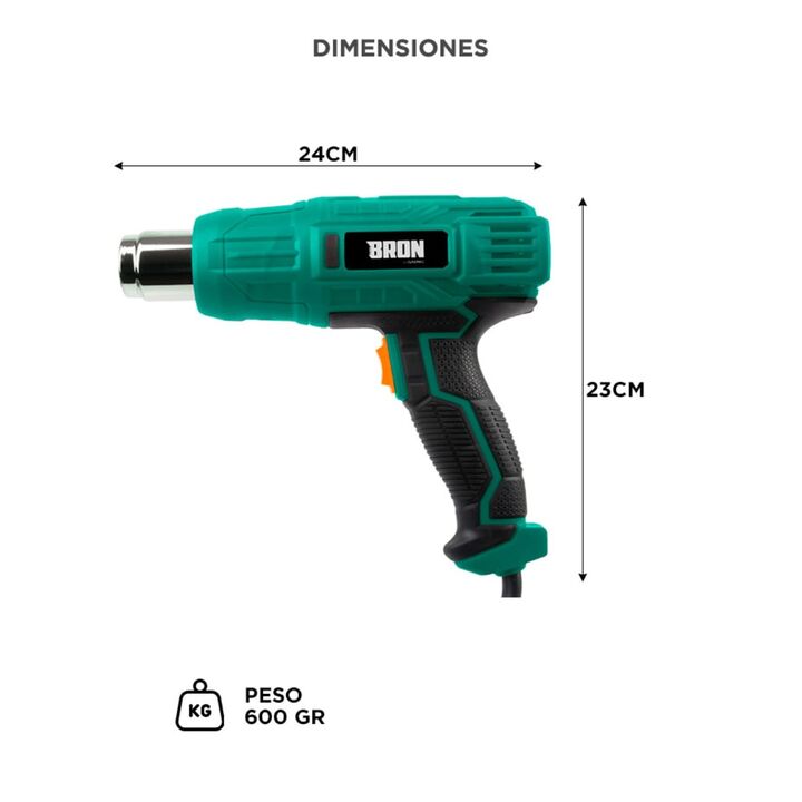 Potencia de 2000W para trabajos exigentes: La pistola de calor Gadnic BRON 2000W ofrece la potencia necesaria para remover pintura, moldear plásticos y aplicar termocontraíbles. Permite trabajar con rapidez y resultados uniformes en múltiples aplicaciones. Doble nivel de temperatura para mayor contr...
