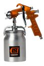 Ficha técnica: • Tipo: pistola de succión • Boquilla: 1,8 mm • Depósito metálico: 1 l • Presión de trabajo: 50/70 Psi • Para operar con aire comprimido a presión regulada 5-6 bar • Viscosidad de la pintura: (0,25 - 0,4 Mpa) • Distancia de pintado: 150 - 200 mm • Consumo: 280/360 l/min • Peso: 1,1 Kg...