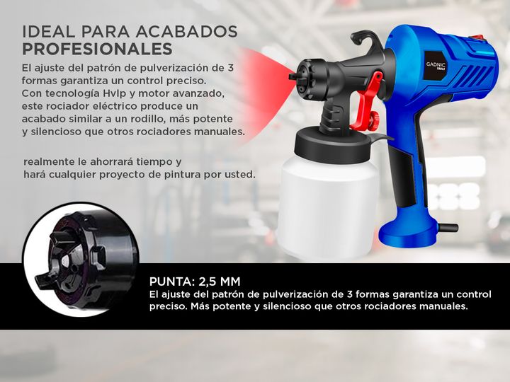 ¡Gadnic presenta su nueva línea de pistolas de pintura! El compresor de pintura de Gadnic PG1000 realmente le ahorrará tiempo y hará cualquier proyecto de pintura por usted. El ajuste del patrón de pulverización de 3 formas garantiza un control preciso. Con tecnología Hvlp y motor avanzado, este roc...