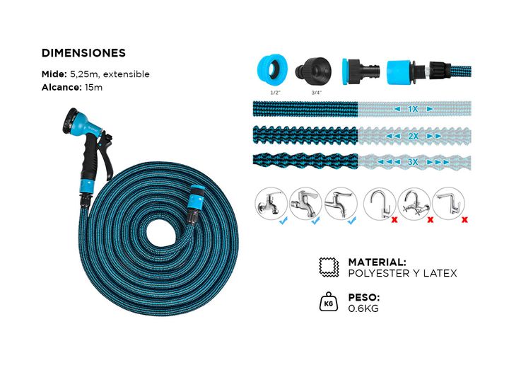 ¡Nueva Manguera Expansible y Pistola de riego Gadnic! Fabricada con tela de poliéster de alta calidad, látex y latón macizo, la manguera de jardín retráctil es segura y duradera de usar. Especificaciones Material: Polyester, Latex Peso: 0.6 kg Modos de la Pistola: 8 modos Alcance: Hasta 15 Metros Li...