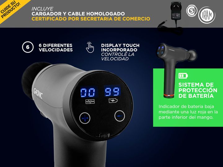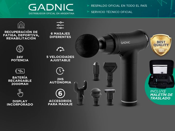 ¡Gadnic presenta su nueva linea de Pistola masajeadora! El masajeador de mano puede aliviar el dolor muscular después del ejercicio, reducir la rigidez de los músculos, reducir la fatiga, promover la circulación sanguínea y el rango de movimiento, y mejorar la salud de los tejidos blandos del cuerpo...