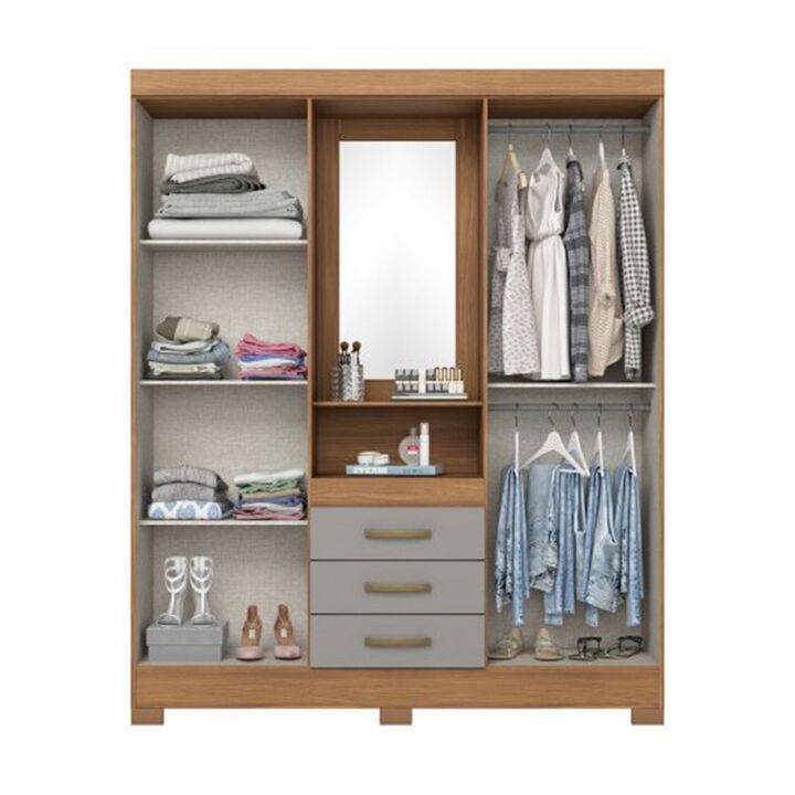 Placard Briz B24-166 Roble/Gris: Organización, Espejo y EstiloEl Placard Briz B24-166 en color roble y gris es la solución de almacenamiento perfecta para tu dormitorio. Con un diseño funcional de 4 puertas y 3 cajones, este armario no solo te ayuda a mantener tus prendas organizadas, sino que tambi...