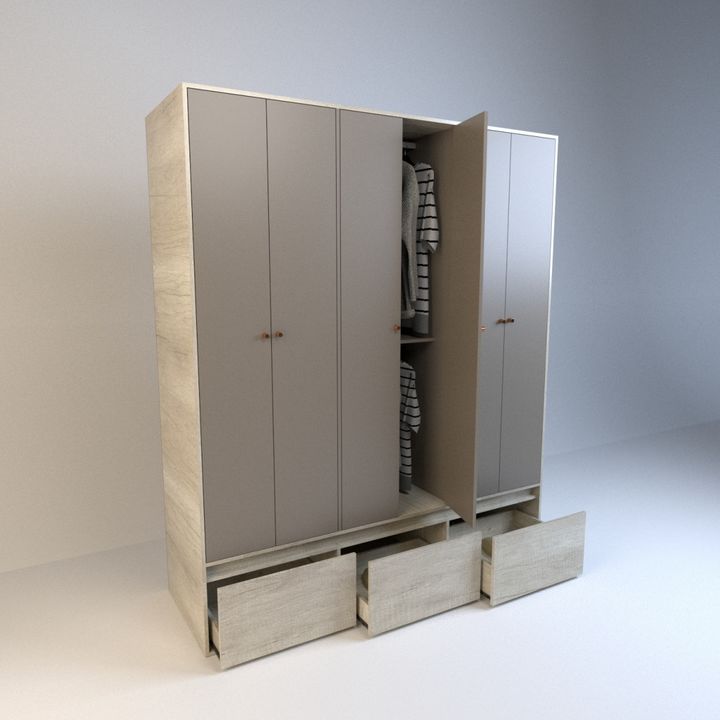Placard de Abrir 1,8m 6 Puertas 4 Cajones 3 Zapateros Nevado Gris C. Tables