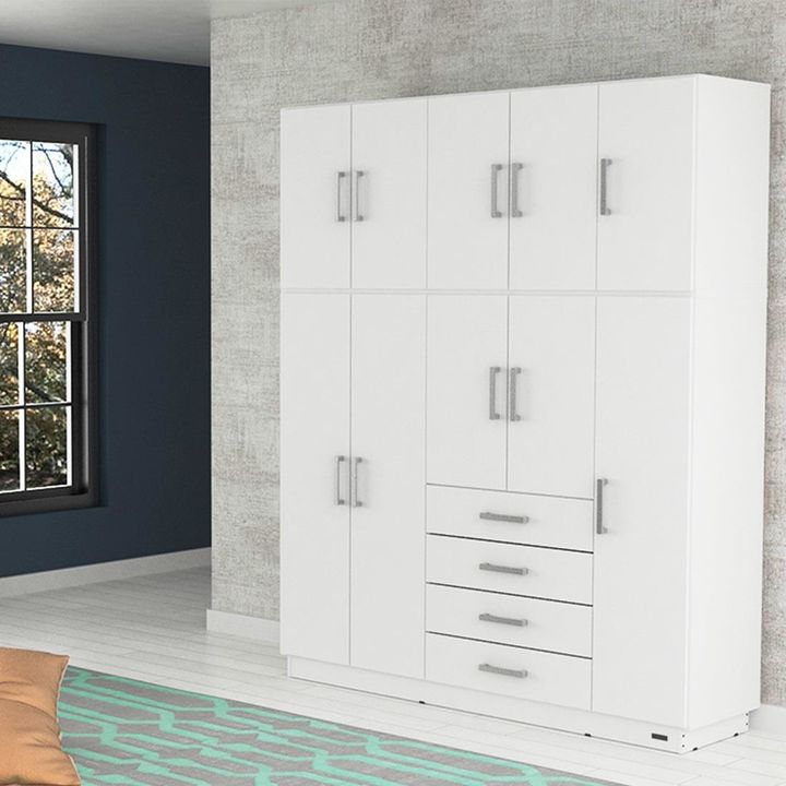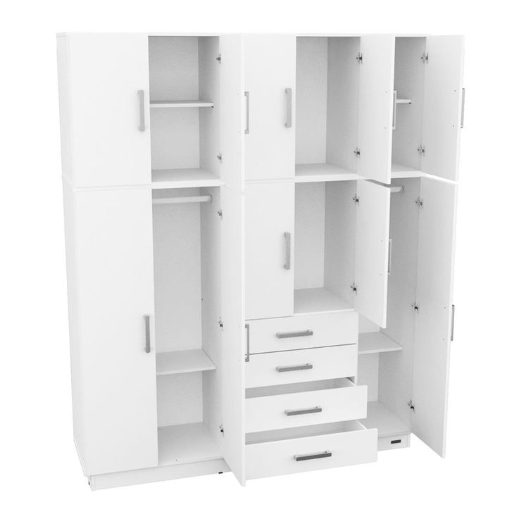 PLACARD MOSCONI ROPERO 10 PUERTAS 4 CAJONES CON BAULERA DAKAR 56567 COLOR BLANCO