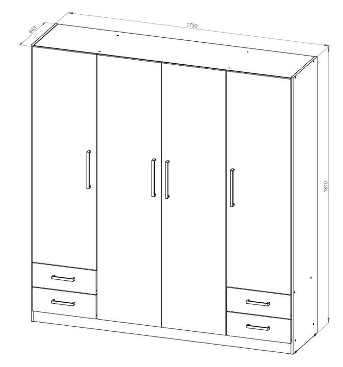 PLACARD PAC170 4P 4C BLANCO DIELFE -4 Puertas -4 Cajones -Melamina 15 mm -Correderas de PVC -Dimensiones (Al x An x Prof): 181 cm x173 cm x 44,3 cm -Color BLANCO -Modelo: PAC170 -Garantía de fabricante: 6 meses -Origen: Argentina