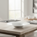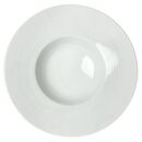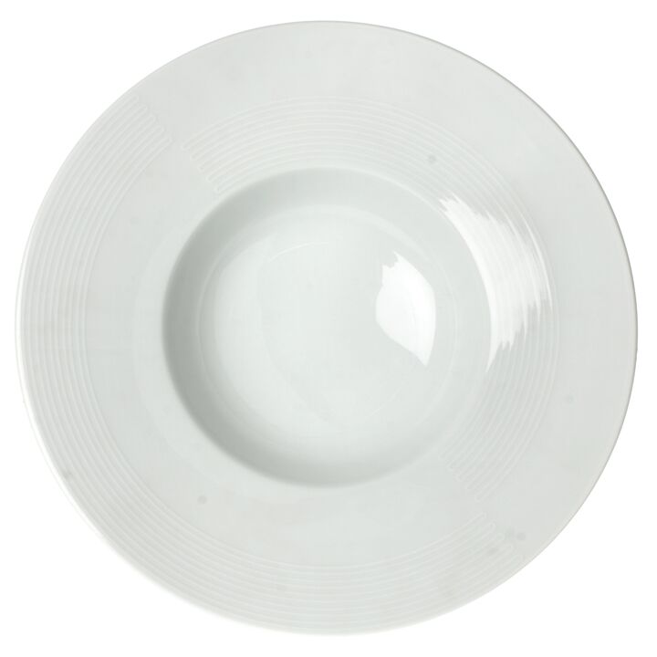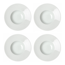 Platos de PASTA HONDOS de Porcelana Blanca, ideal Gastronomía. Detalle en sus asas de rayitas. Altura Total : 5,5 cm Medida diametro : 27 cms El hueco hondo diámetro : 14 cms El borde : 6,5 cms Apto para Lavavajillas y Microondas. El set incluye: 4 Platos de Pasta Ideal para pastas , arroces , sopas...