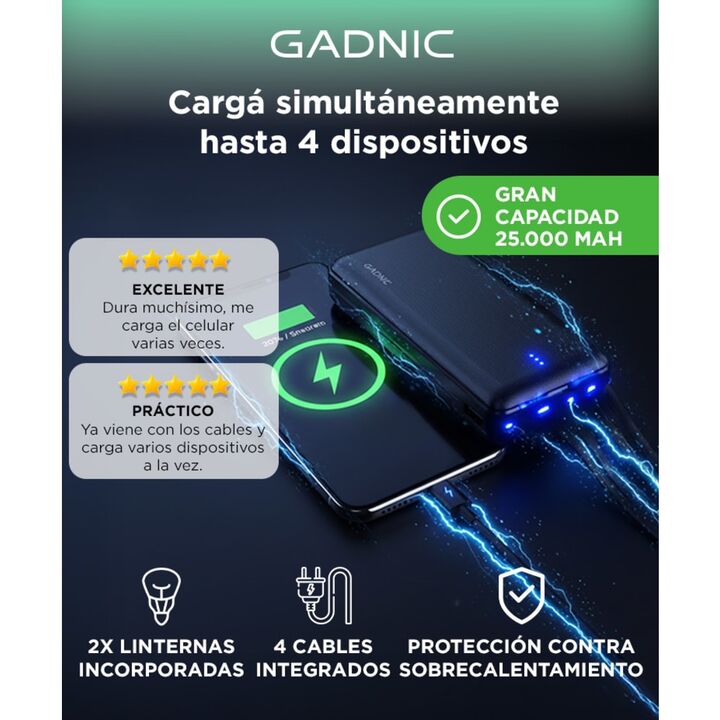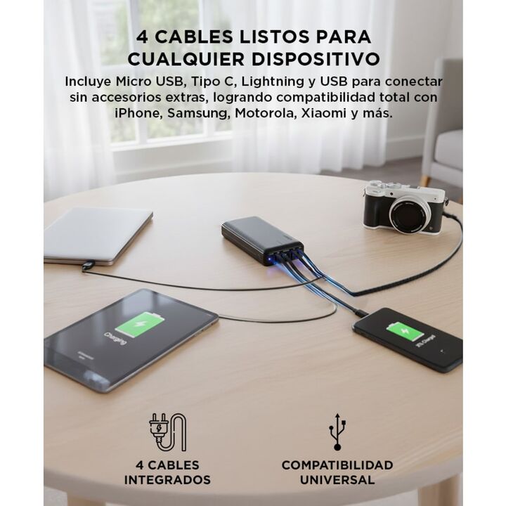 Este power bank te permite cargar tus dispositivos (smartphones, tablets, smartbands) en un tiempo récord sin agotar la batería, proporcionando hasta 25000 mAh de potencia para recargar tu móvil repetidamente. Compatible con cualquier dispositivo móvil, tablet, cámara, reloj inteligente. ¡Nuevo dise...