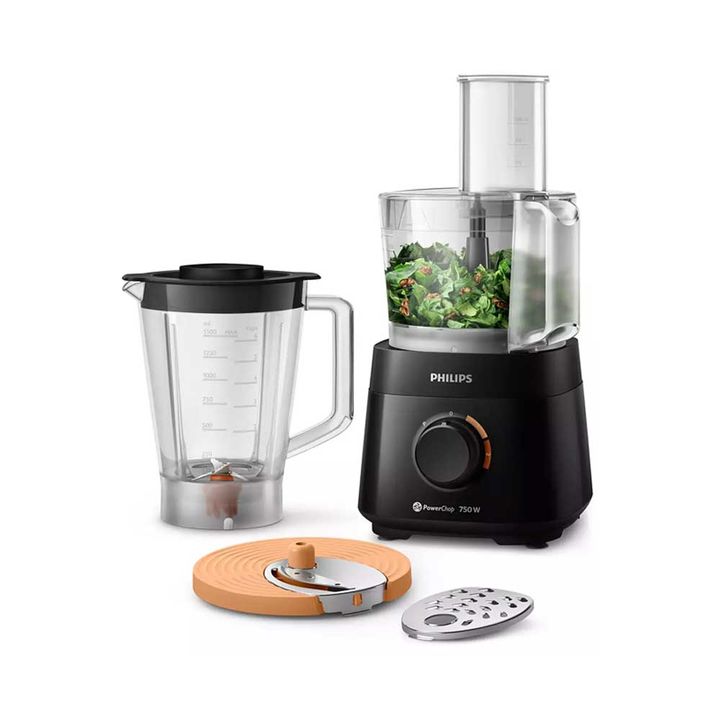 Simplificá tus preparaciones con la procesadora Philips HR7301/90. Con 750 W de potencia y 4 accesorios, permite licuar, triturar y batir con facilidad. Su vaso de plástico de hasta 2 litros facilita recetas para toda la familia. | Código Interno: 720127 | Modelo: HR7301/90 | Capacidad: 2 Litros/ 1....