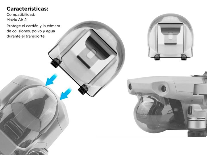 Acerca de Protector Gymbal DJI Mavic Air 2 Protege el cardán y la cámara de colisiones, polvo y agua durante el transporte. Especificaciones Compatibilidad: Mavic AIR 2
