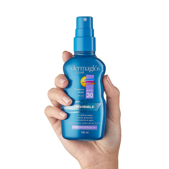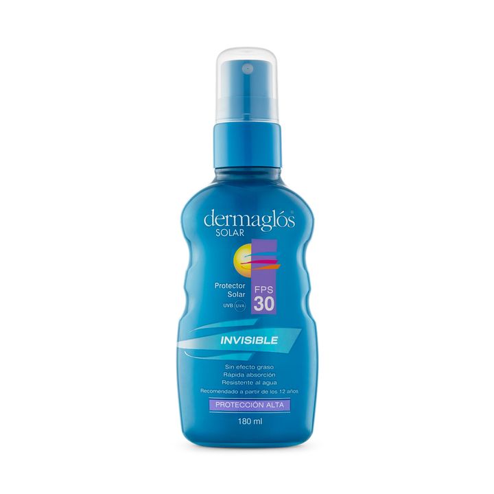 Protector Solar Dermaglos Fps 30 Spray Invisible Dermaglós Solar Spray Invisible FPS 30 INFORMACIÓN DEL PRODUCTO Su tamaño lo hace fácil de transportar y su práctico dosificador permite una rápida aplicación. Gracias a su textura liviana y ser invisible es ideal para hombres porque funciona bien en ...
