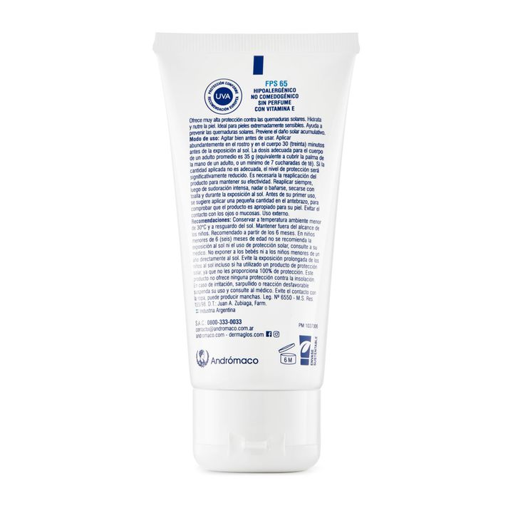 Protector Solar Dermaglos Fps65 Piel Muy Sensible X 90 Gs Dermaglós Solar Crema FPS 65 INFORMACIÓN DEL PRODUCTO La piel extremadamente sensible requiere una protección mayor, el Protector solar con FPS 65 está formulado para brindar la hidratación y nutrición necesaria para este tipo de piel, proteg...