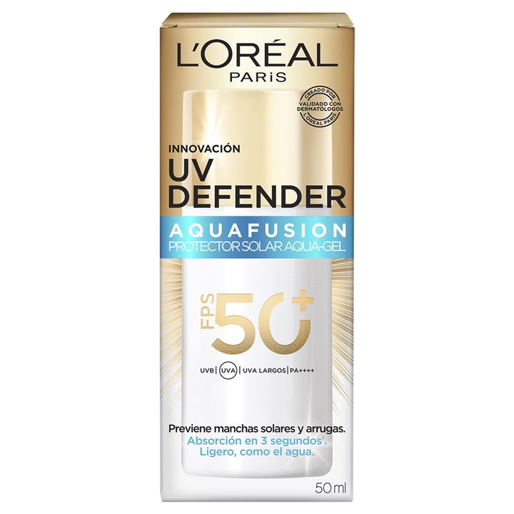 Protector Solar Loreal Paris Uv Defender Aquafusion Fps50 Si buscás un protector solar que se sienta liviano y te acompañe todos los días, el L’Oréal Paris UV Defender Aquafusion FPS 50+ es una excelente opción. Su textura en gel acuosa se absorbe rápidamente, dejando una sensación fresca, ligera y ...