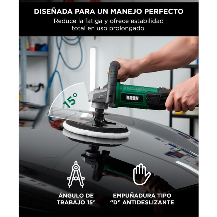 Pulido profesional sin esfuerzo: La tecnología orbital reduce marcas y rayas, logrando acabados brillantes en menos pasadas. Potente motor de 850W: Trabajá con seguridad y rendimiento constante gracias a su potencia ideal para tareas de detailing. Velocidad variable: Regulá entre 2000 y 6400 rpm seg...